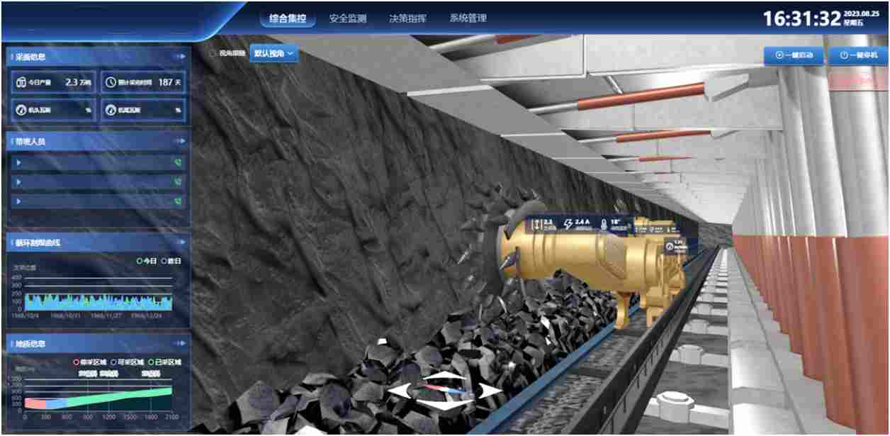 一体化管控平台打造全量数据底座,融合矿井孪生场景引擎,赋能矿井生产环节综合监控、指挥调度统一协作、设备安全监测预警、决策支持智能分析、集中远程联动控制等业务使用 场景,提供对融合数据的综合利用和深度挖掘,实现对企业综合运维可视化、智能化管理,达到全面洞悉矿井运行、辅助减轻人员工作量、保证矿井生产安全、以智能化手段辅助增效。